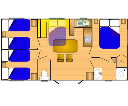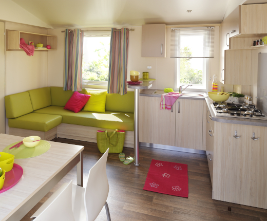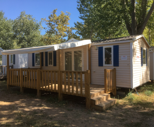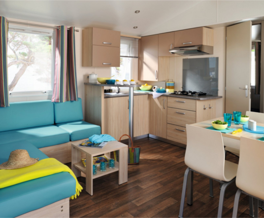 Geniessen Sie all die Vorzüge eines Campingurlaubs mit dem zusätzlichen Komfort eines eigenen Badezimmers, Küche und offen angelegtem Wohnen. Alle unserer Mobilheime sind mit Holzterrassen ausgestattet, einige überdacht, und die meisten Mobilheime sind mit Klimaanlage ausgestattet.