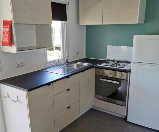 • Sink • Fridge • 4-burner hob • Oven • Microwave • Coffee machine • Electric kettle • Toaster