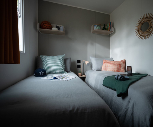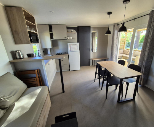 Geniessen Sie all die Vorzüge eines Campingurlaubs mit dem zusätzlichen Komfort eines eigenen Badezimmers, Küche und offen angelegtem Wohnen. Alle unserer Mobilheime sind mit Holzterrassen ausgestattet, einige überdacht, und die meisten Mobilheime sind mit Klimaanlage ausgestattet.