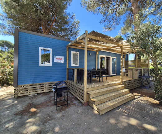 Holzterrasse, überdachte Holzterrasse und Klimaanlage stehen nur bei ausgesuchten Mobilheimen zur Verfügung. Wenn auf einem Foto eine Holzterrasse oder überdachte Holzterrasse, bedeutet dies nicht, daß alle Mobilheime dieses Modell Typs eine Holzterrasse oder überdachte Holzterrasse haben. Auf jeder Campingplatzseite geben wir an, welche Mobilheime mit Holzterrasse, überdachter Holzterrasse und Klimaanlage ausgestattet sind.