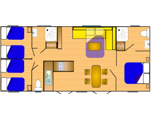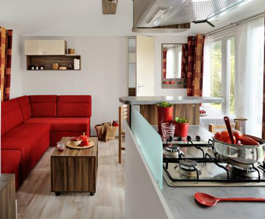 Geniessen Sie all die Vorzüge eines Campingurlaubs mit dem zusätzlichen Komfort eines eigenen Badezimmers, Küche und offen angelegtem Wohnen. Alle unserer Mobilheime sind mit Holzterrassen ausgestattet, einige überdacht, und die meisten Mobilheime in Italien und an der französischen und italienischen Mittelmeerküste sind mit Klimaanlage ausgestattet.