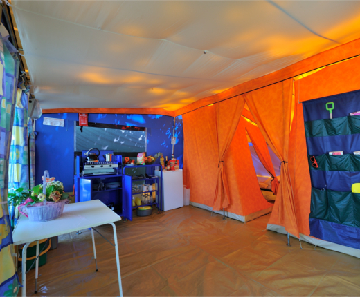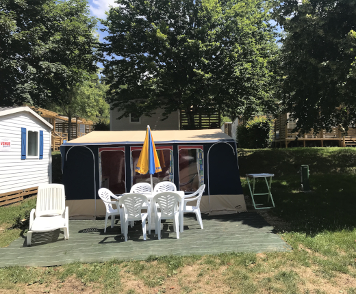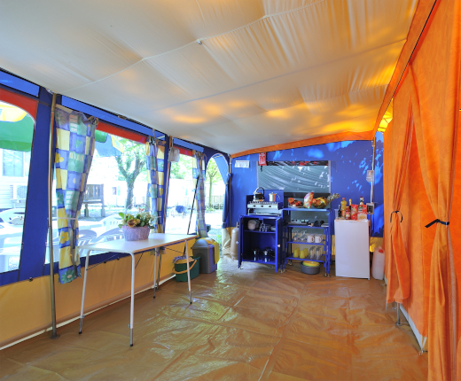 Modern design and made of an excellent mix of natural and synthetic fibres. The Espace Tent is robust against the elements whilst being light and modern. The three doors allow ease of access and the four windows, kitchen and rear tent ventilation make the interior light and airy.