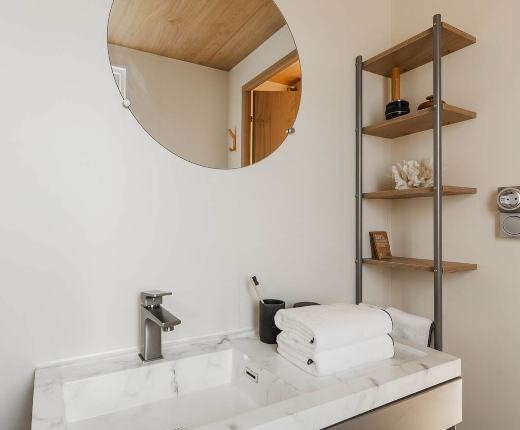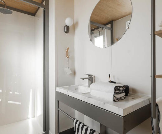 Bathroom: Shower • Wash basin • Mirror