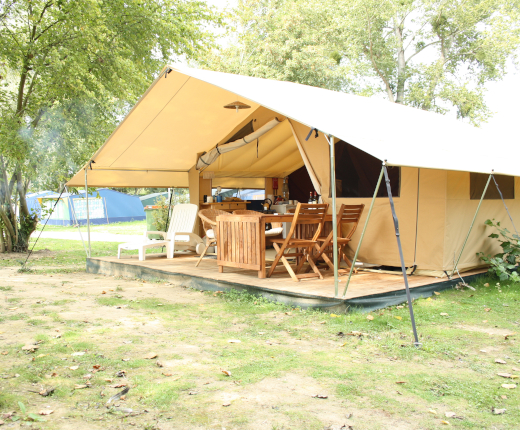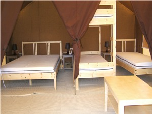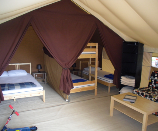 2 Bedrooms are located at the back of the tent and they each have a ventilated window to provide ample light and air. The bedrooms are equipped with wooden furniture, and each bedroom also has a bedside table and reading lamp.