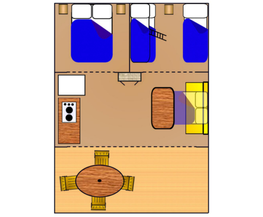 Electrics: 2 internal and 1 external lights. Every tent has a spare electrical socket. This is a European 2-pin socket so please bring an adaptor.